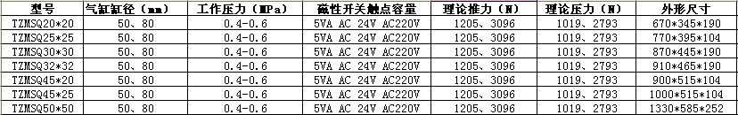 表中理論推力和理論壓力按氣壓0.63MPA計(jì)算